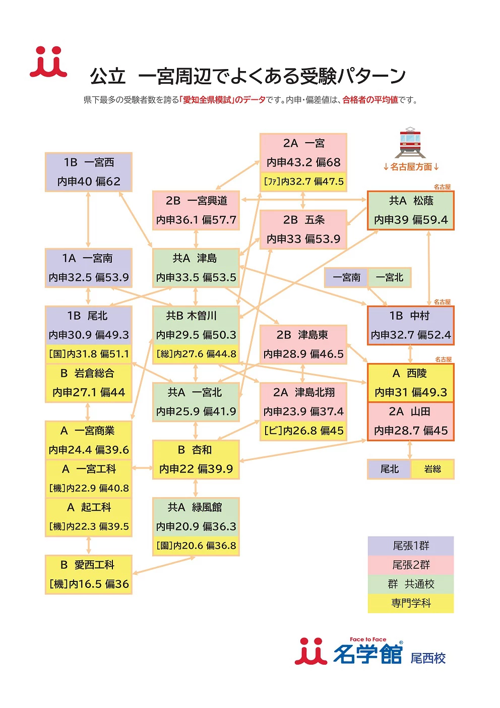 組み合わせ相手校である一宮西高校がダメだった生徒は、内申点が高いです。